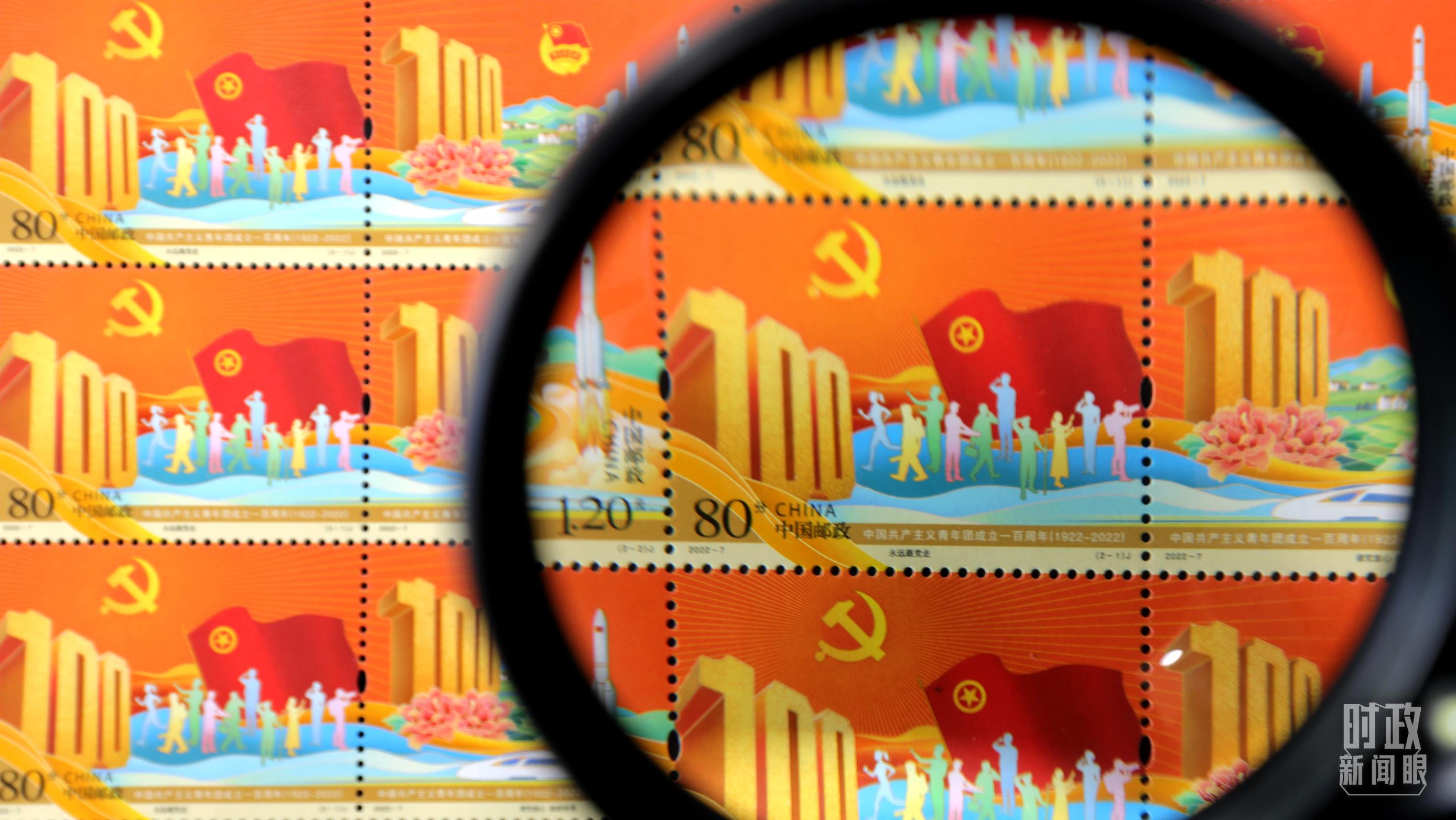 △2022年5月,中國(guó)郵政發(fā)行《中國(guó)共產(chǎn)主義青年團(tuán)成立一百周年》紀(jì)念郵票。(圖丨視覺(jué)中國(guó))
