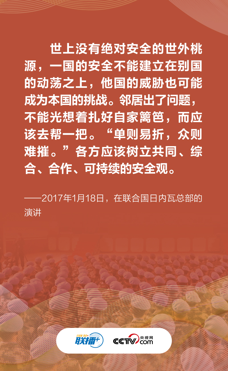 作為負責任的大國,中國一直為維護世界和平、安寧與發(fā)展不懈努力。2014年5月21日,為促進亞洲和平發(fā)展,習近平主席在亞洲相互協(xié)作與信任措施會議第四次峰會上提出踐行共同、綜合、合作、可持續(xù)的亞洲安全觀。此后,他在諸多國際場合多次倡導并不斷發(fā)展“共同、綜合、合作、可持續(xù)的安全觀”,為世界指引一條通往持久和平的康莊大道。央視網(wǎng)《聯(lián)播+》與您一起學習。