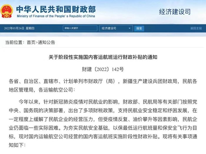 記者26日了解到,財政部、民航局日前發(fā)布通知,自2022年5月21日至2022年7月20日,對國內(nèi)運輸航空公司經(jīng)營的國內(nèi)客運航班實施階段性財政補(bǔ)貼。原則上當(dāng)每周內(nèi)日均國內(nèi)客運航班量低于或等于4500班(保持安全運行最低飛行航班數(shù))時,啟動財政補(bǔ)貼。對國內(nèi)客運航班實際收入扣減變動成本后的虧損額給予補(bǔ)貼。設(shè)定最高虧損額補(bǔ)貼標(biāo)準(zhǔn)上限為每小時2.4萬元。(記者申鋮、周圓)
