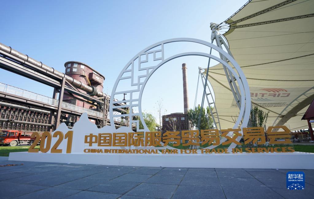 這是2021年8月31日在北京拍攝的2021年中國國際服務(wù)貿(mào)易交易會首鋼園展區(qū)。新華社記者 陳曄華 攝