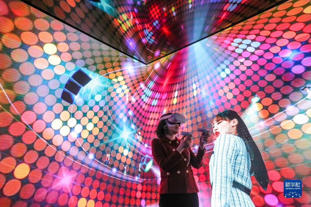 2022年3月1日,一名女子在西班牙巴塞羅那2022世界移動通信大會上通過虛擬現(xiàn)實技術(shù)在“元宇宙”中體驗音樂會。新華社記者 鄭煥松 攝