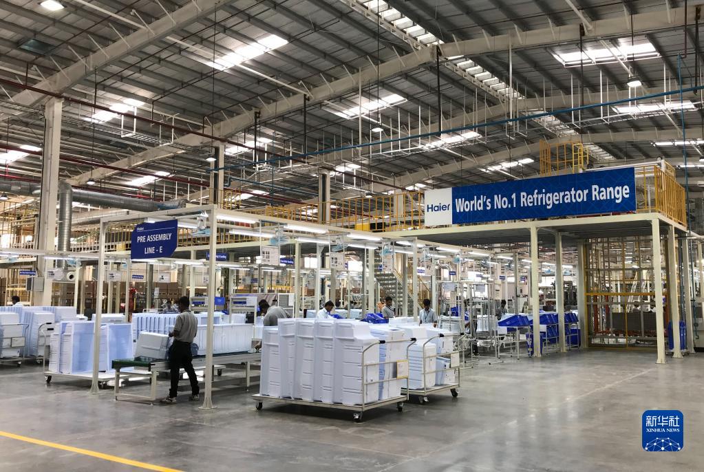 2017年11月16日,在印度浦那市,工人在中國(guó)海爾集團(tuán)工業(yè)園廠房?jī)?nèi)工作。新華社記者 張興軍 攝