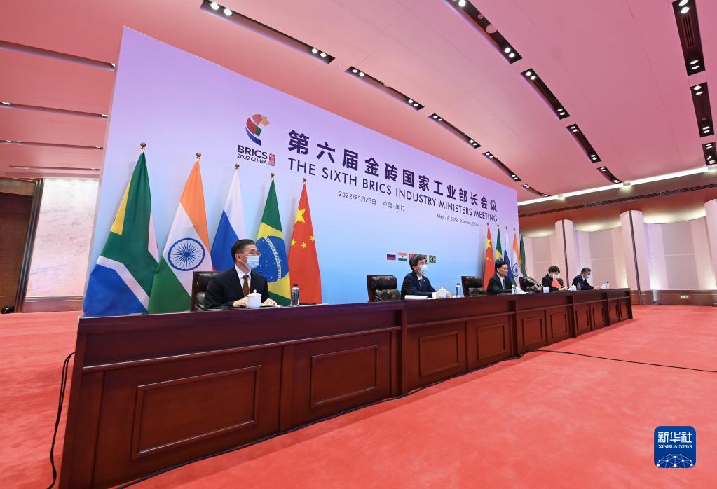 2022年5月23日,第六屆金磚國(guó)家工業(yè)部長(zhǎng)會(huì)議在福建廈門以視頻會(huì)晤的形式舉行。新華社記者 林善傳 攝
