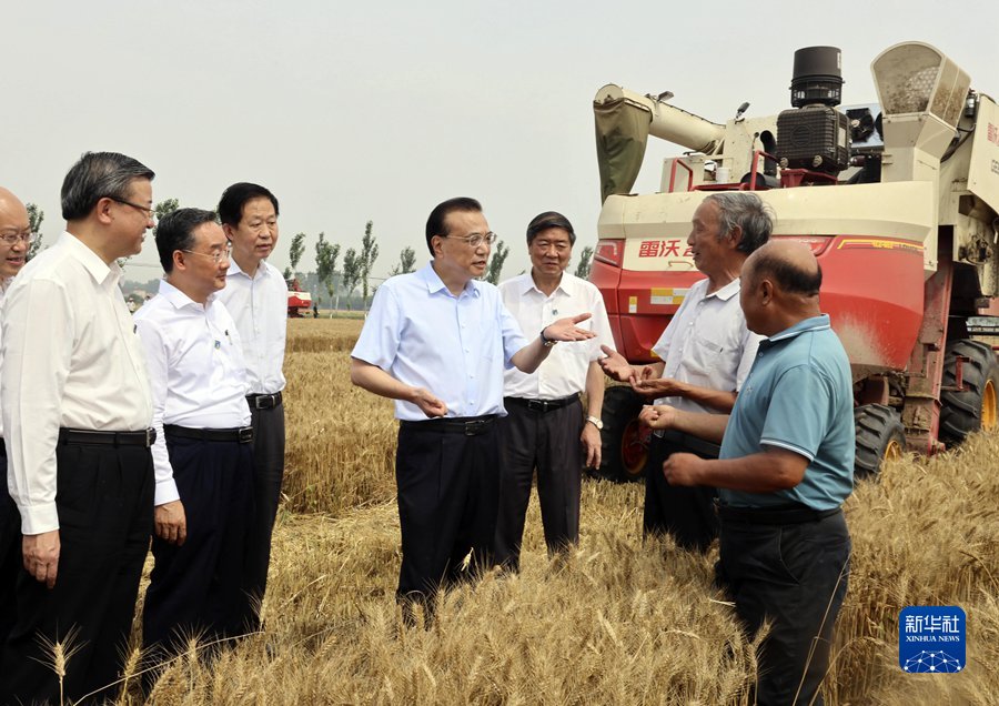 6月21日,中共中央政治局常委、國(guó)務(wù)院總理李克強(qiáng)在河北高碑店、涿州考察。這是李克強(qiáng)在高碑店方官鎮(zhèn)小麥地里,與種糧農(nóng)戶(hù)等交談。 新華社記者 劉衛(wèi)兵 攝