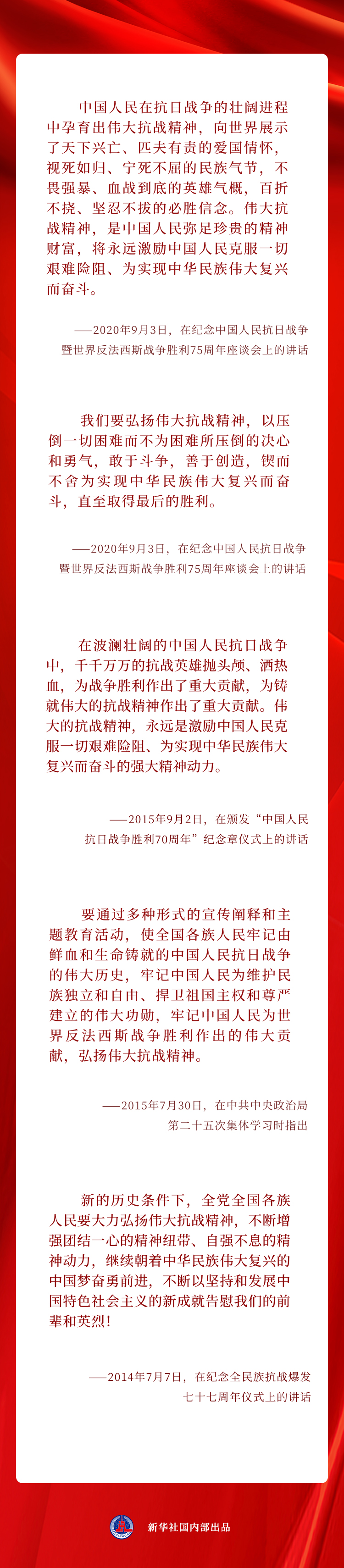 讓我們一起重溫習(xí)近平總書(shū)記重要論述,從偉大抗戰(zhàn)精神中汲取力量↓