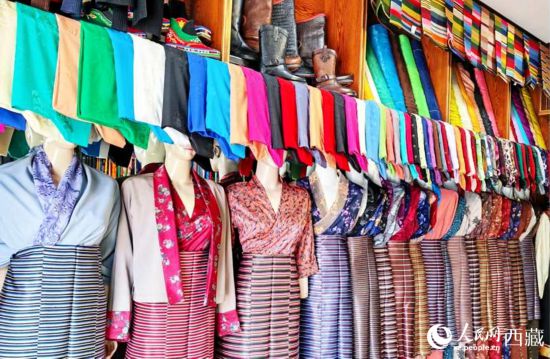 環(huán)繞拉薩八廓古城,開滿了藏裝店。人民網 李海霞攝
