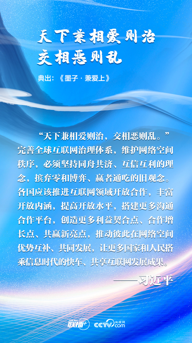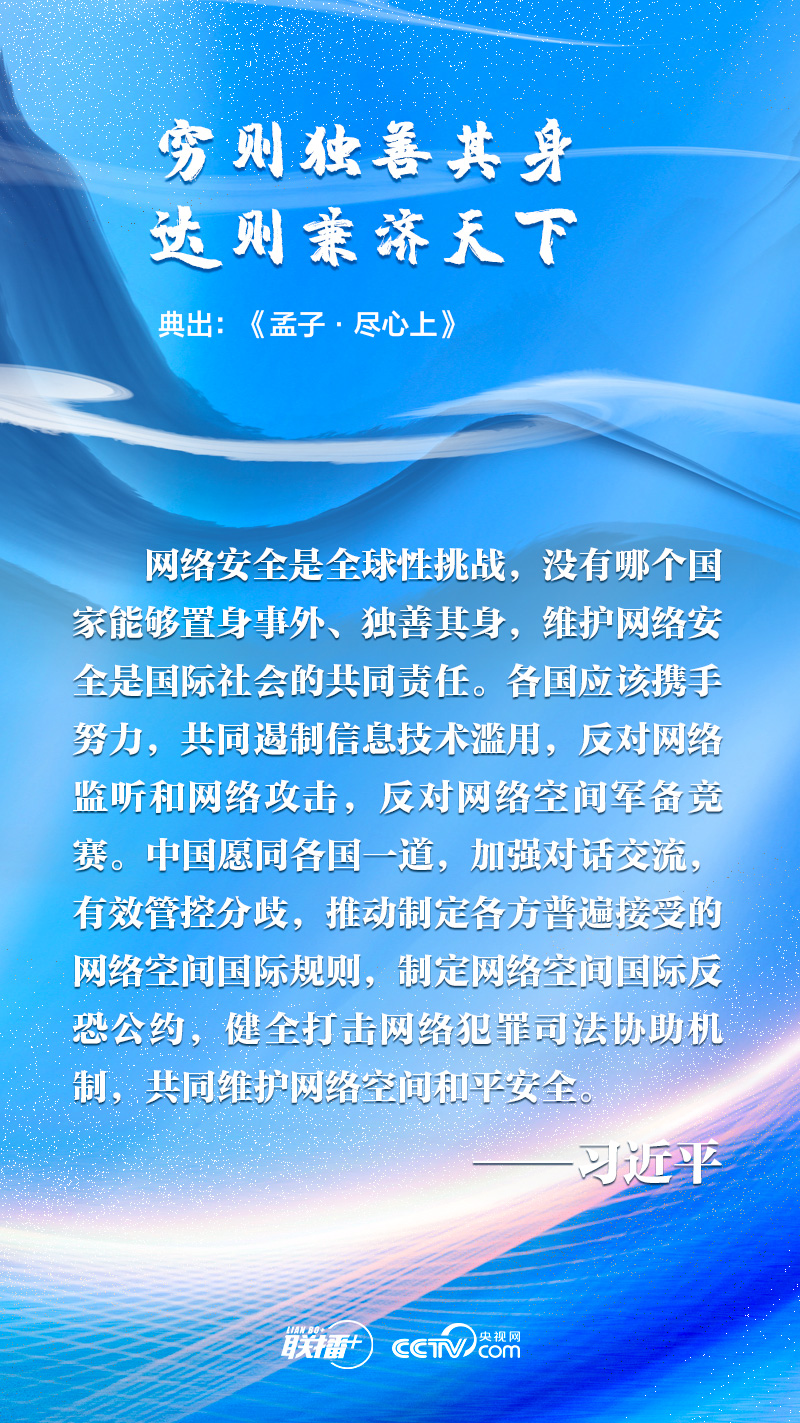 “網(wǎng)絡(luò)空間是人類(lèi)共同的活動(dòng)空間,網(wǎng)絡(luò)空間前途命運(yùn)應(yīng)由世界各國(guó)共同掌握。各國(guó)應(yīng)該加強(qiáng)溝通、擴(kuò)大共識(shí)、深化合作,共同構(gòu)建網(wǎng)絡(luò)空間命運(yùn)共同體。”