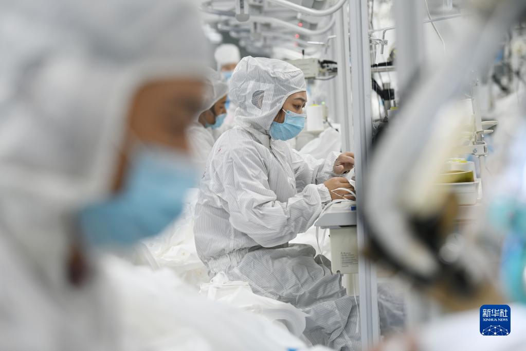 2022年4月27日,福建省福州市倉山區(qū)一家民營企業(yè)的工人在縫制防護(hù)服。新華社發(fā)(王旺旺攝)