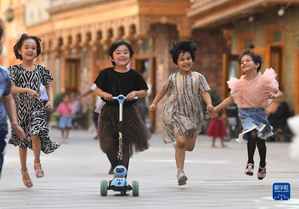 2020年5月27日,孩子們在新疆和田市團(tuán)城的鴿子巷玩耍。新華社記者 沙達(dá)提 攝