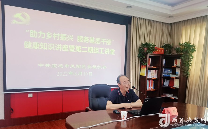 西部決策網(wǎng)訊 近日,九三學社寶雞市鳳翔區(qū)綜合支社醫(yī)學研究室,在鳳翔區(qū)委組織部開展“助力鄉(xiāng)村振興 服務基層干部”健康知識講座活動。本次活動以智慧黨建平臺視頻系統(tǒng)召開,鳳翔區(qū)委組織部為主會場,各鎮(zhèn)、村設分會場,各鎮(zhèn)機關干部、村干部,駐村工作隊第一書記、隊員,鳳翔區(qū)委組織部機關全體干部,共計600余人參加會議。