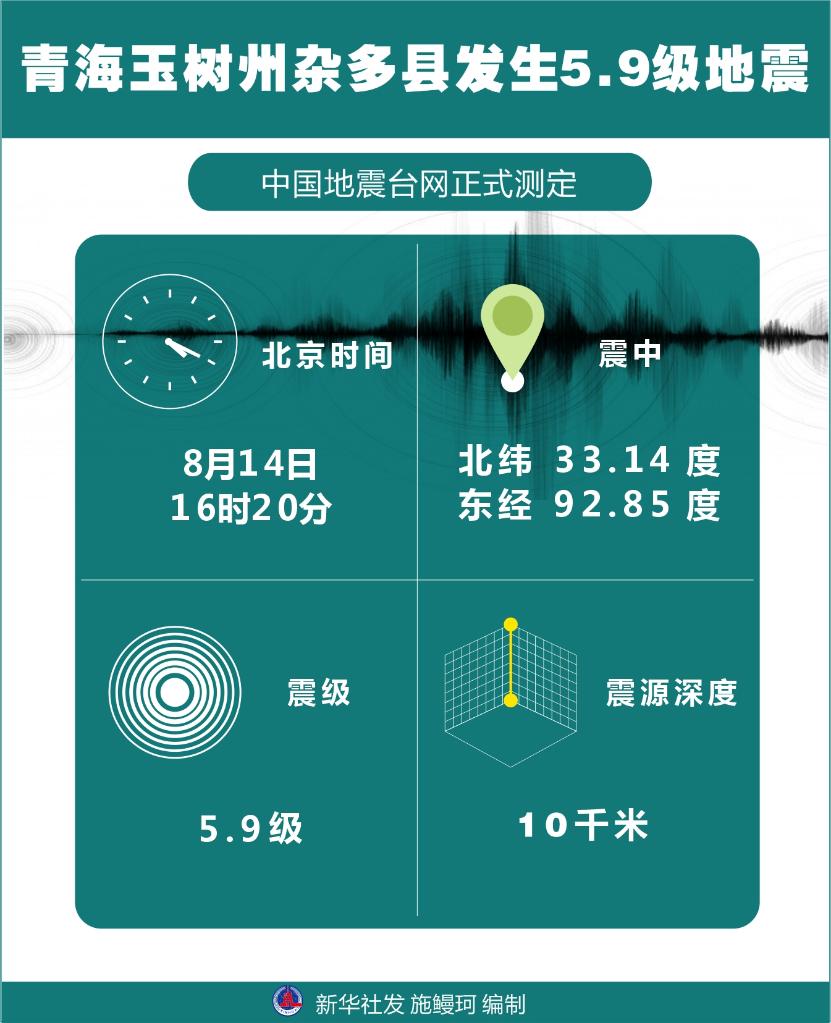 記者從青海省地震局獲悉,8月14日16時(shí)20分,青海省玉樹藏族自治州雜多縣發(fā)生5.9級(jí)地震,震源深度10千米,震中位于北緯33.14度、東經(jīng)92.85度。目前,暫無(wú)人員傷亡消息。