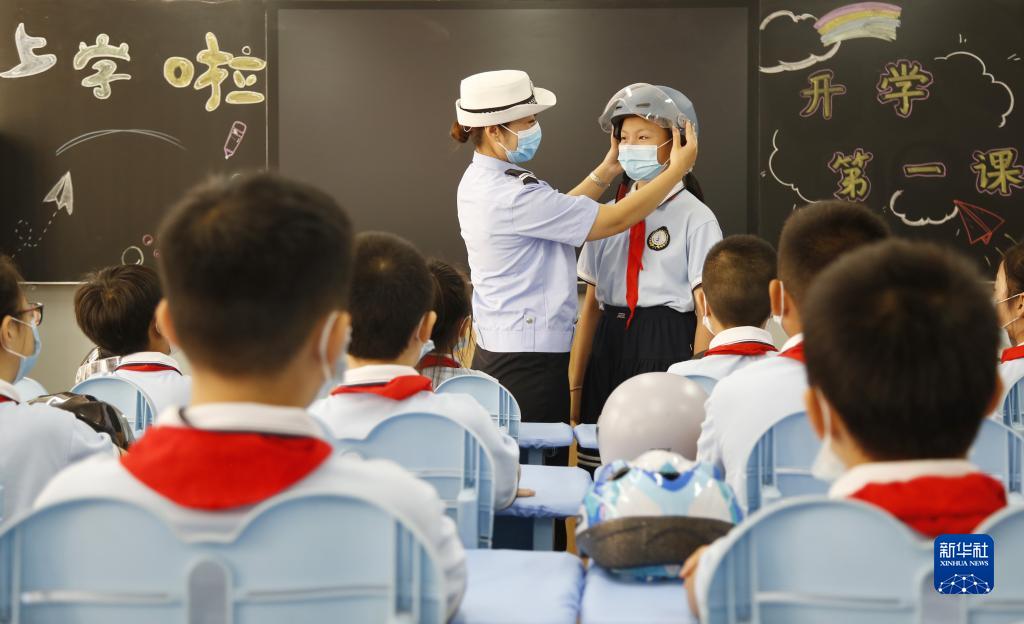 當(dāng)日,全國(guó)多地中小學(xué)開學(xué),學(xué)生們?cè)谛问蕉鄻拥拈_學(xué)第一課中迎來(lái)新的學(xué)期。