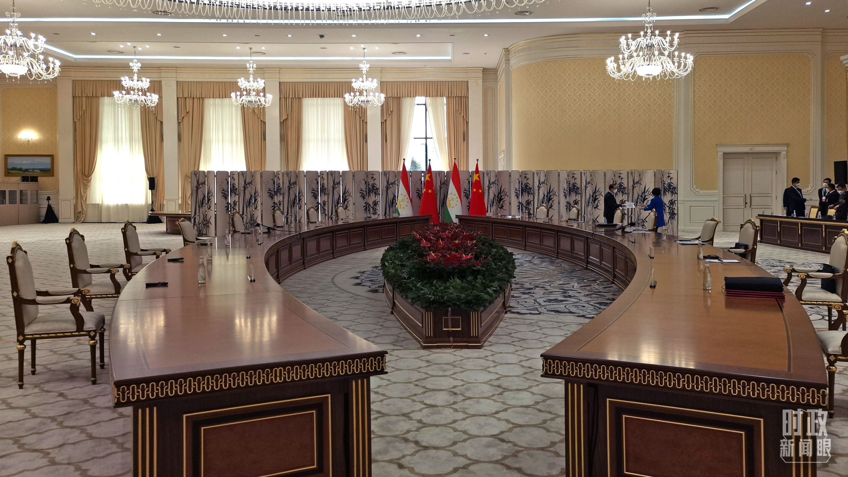 △中國(guó)、塔吉克斯坦兩國(guó)元首會(huì)見在這里舉行。(總臺(tái)央視記者馬超拍攝)