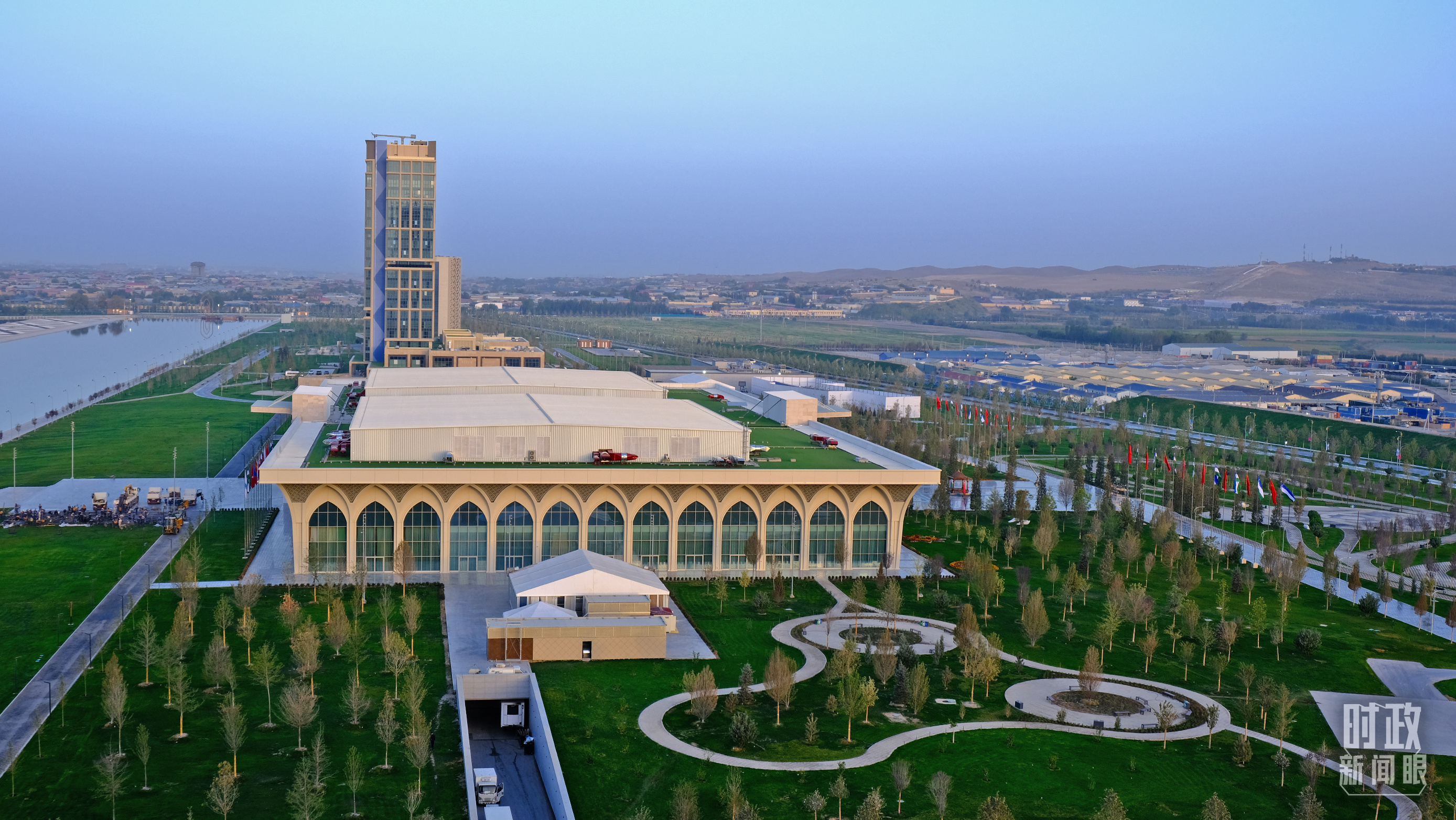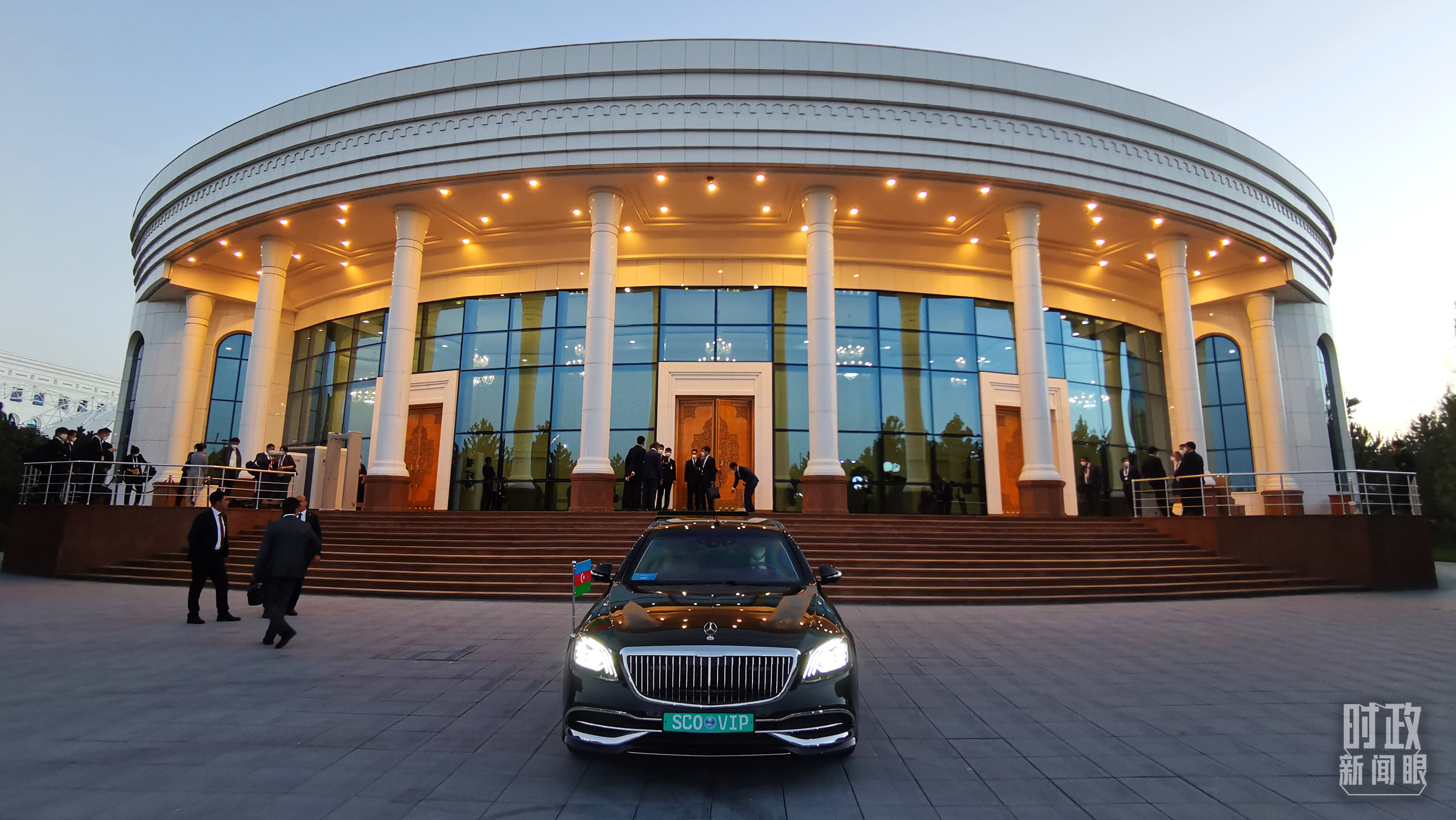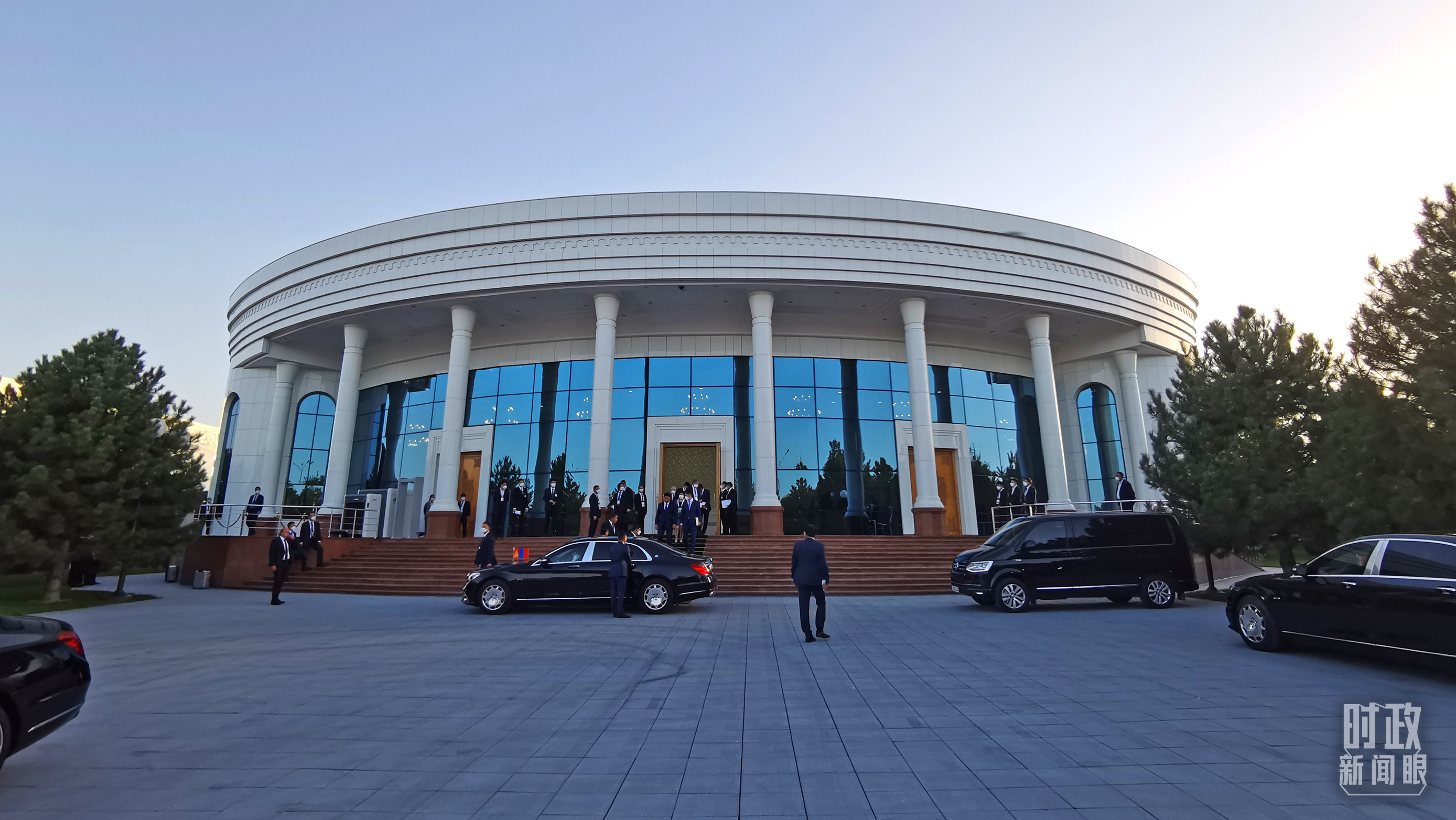 15日上午,習(xí)主席乘車抵達(dá)撒馬爾罕國(guó)際會(huì)議中心。這座建筑是今年4月新落成的。接待習(xí)主席來訪,是它首次用作國(guó)事活動(dòng)舉辦場(chǎng)地。