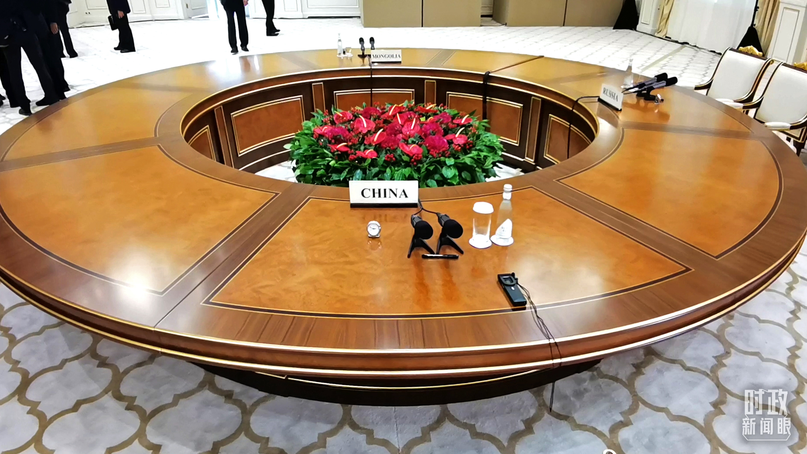 △這是中俄蒙三國(guó)元首舉行會(huì)晤的大圓桌。(總臺(tái)央視記者楊波拍攝)