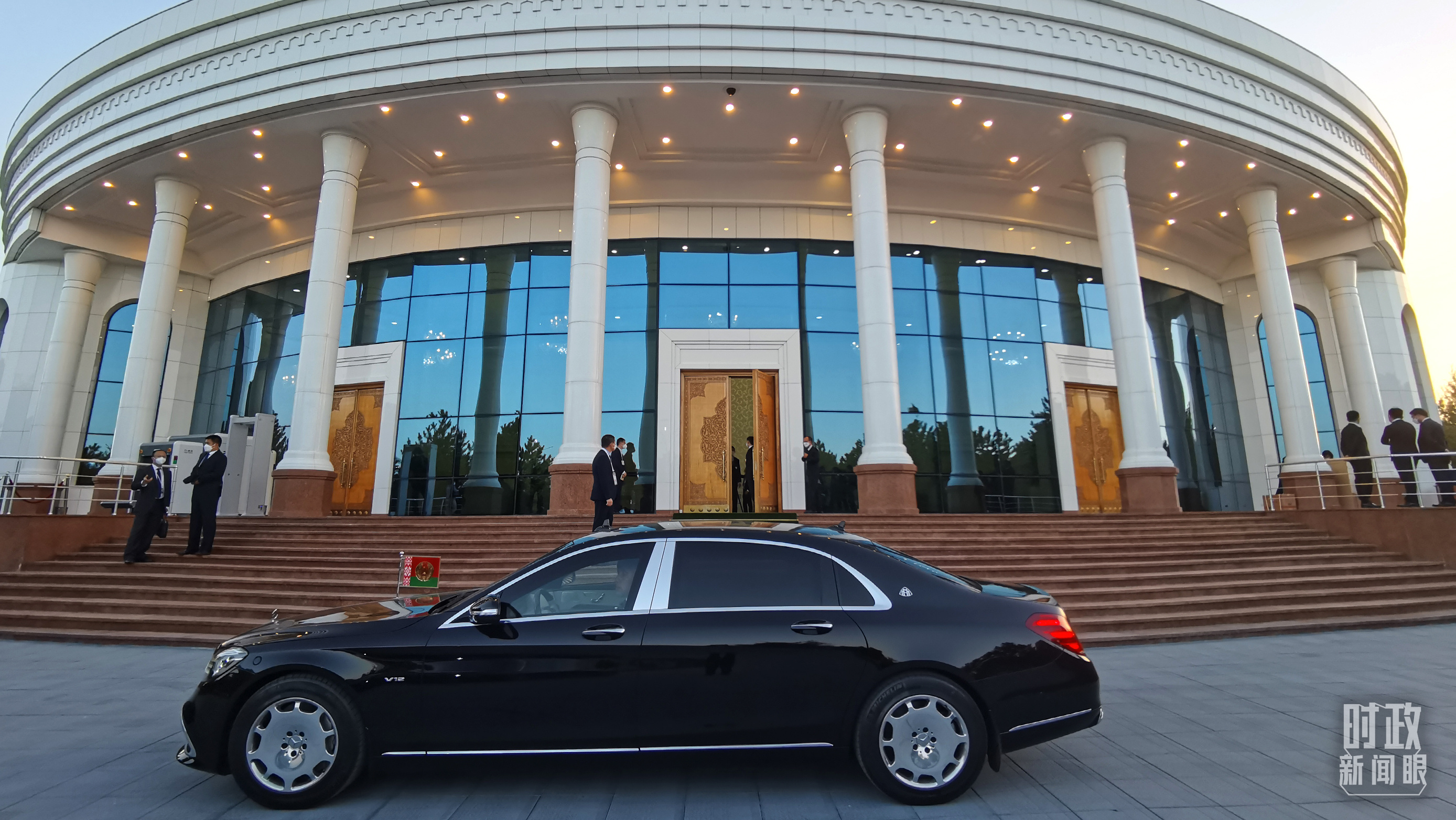 △白俄羅斯總統(tǒng)乘車抵達(dá)撒馬爾罕國(guó)賓館。(總臺(tái)央視記者楊波拍攝)