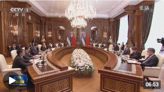 在撒馬爾罕國(guó)際會(huì)議中心,習(xí)近平主席同米爾濟(jì)約耶夫總統(tǒng)舉行正式會(huì)談。