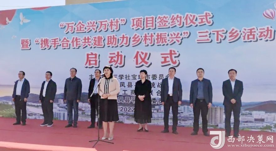 西部決策網訊 9月28日,為進一步落實全市黨派工作協同協商會議精神,九三學社寶雞市委、鳳縣工商聯“萬企興萬村”項目簽約儀式暨“攜手合作共建 助力鄉(xiāng)村振興”三下鄉(xiāng)活動啟動儀式在鳳縣平木鎮(zhèn)隆重舉辦。 寶雞市人大常委會副主任、九三學社寶雞市委主委車爽,鳳縣人大常委會主任劉淳,中共寶雞市委統(tǒng)戰(zhàn)部班子成員、二級調研員毛建錄,中共鳳縣縣委常委、統(tǒng)戰(zhàn)部部長吳海濤,九三學社寶雞市委副主委兼秘書長郭紅全、副主委李獻軍,中共寶雞市委統(tǒng)戰(zhàn)部黨派科科長湛玉忠,鳳縣平木鎮(zhèn)黨委書記張紅利、鎮(zhèn)長鄧振宇,鳳縣工商聯主席陳強參加簽約儀式和三下鄉(xiāng)啟動儀式。活動儀式由郭紅全副主委主持。