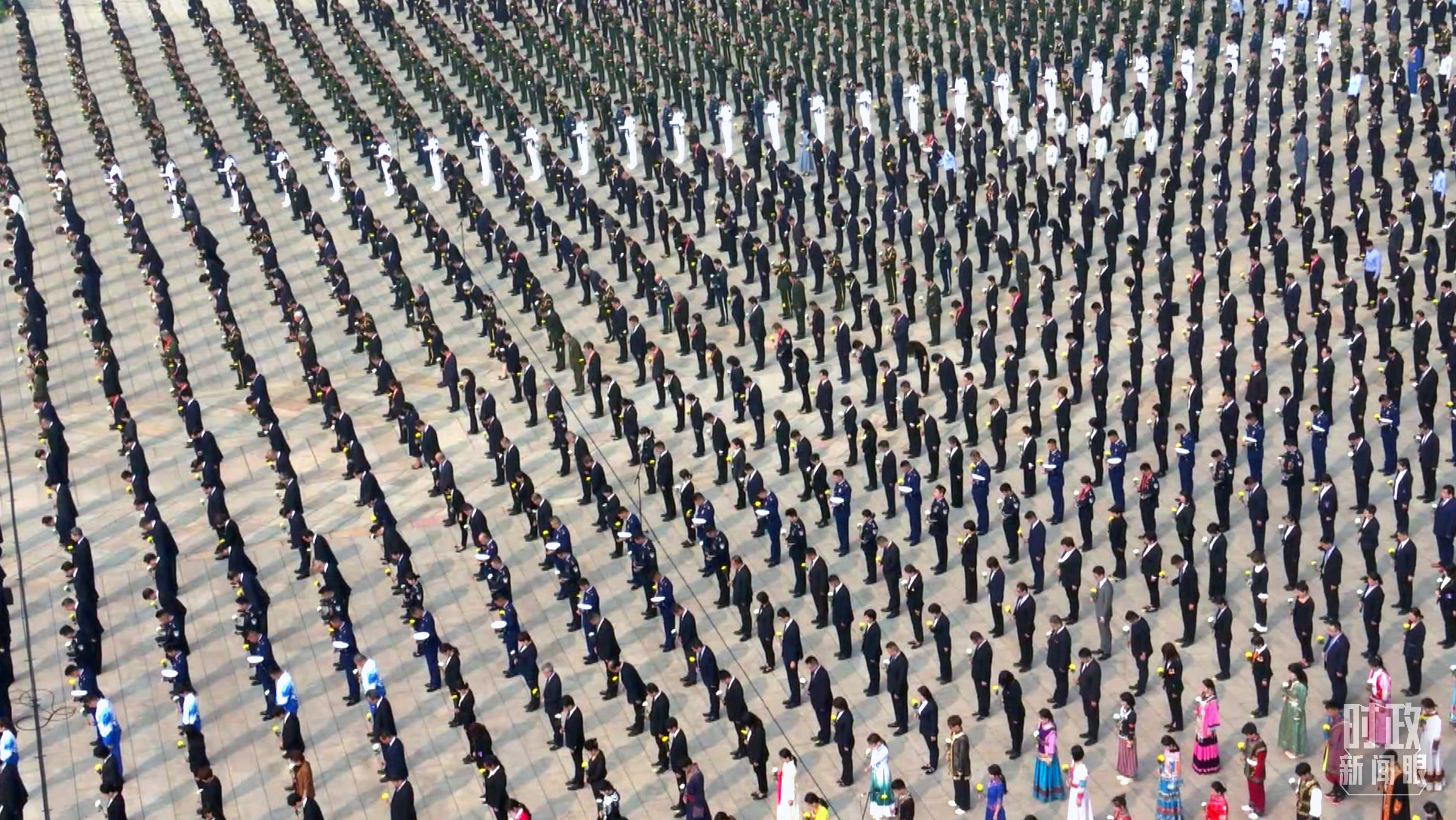 △儀式現(xiàn)場,各界代表依次走到紀念碑前,獻上手中鮮花。(總臺央視記者閆耀東、國廣記者李晉拍攝)