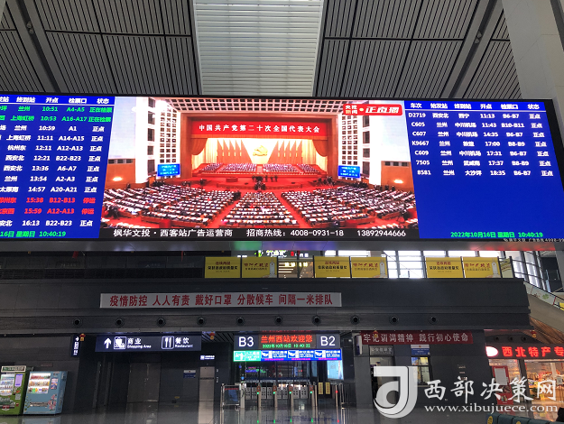 西部決策網(wǎng)訊(記者帥華鋒 杜杰 通訊員 金帥群 黃貴彬) 10月16日上午10時(shí),舉世矚目的中國(guó)共產(chǎn)黨第二十次全國(guó)代表大會(huì)在北京人民大會(huì)堂隆重開幕,在甘寧兩?。▍^(qū))的千里鐵道線上處處洋溢著喜慶的氛圍。蘭州鐵路局廣大干部職工懷著無(wú)比激動(dòng)的心情,通過多種形式收聽收看大會(huì)直播盛況。同時(shí),面向旅客在蘭州、蘭州西、武威等車站,利用候車室大屏播放黨的二十大開幕式,過往旅客候車間隙紛紛駐足觀看,以最隆重的儀式迎接大會(huì)勝利召開。