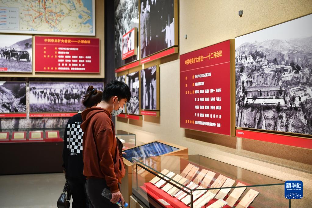 10月16日,在陜西省延安市,人們在延安革命紀念館參觀。新華社記者 張博文 攝