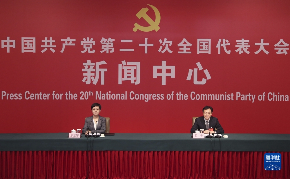 10月21日,中國共產黨第二十次全國代表大會新聞中心舉行記者招待會。生態(tài)環(huán)境部黨組成員、副部長翟青圍繞“建設人與自然和諧共生的美麗中國”主題與記者交流。新華社記者 賈浩成 攝