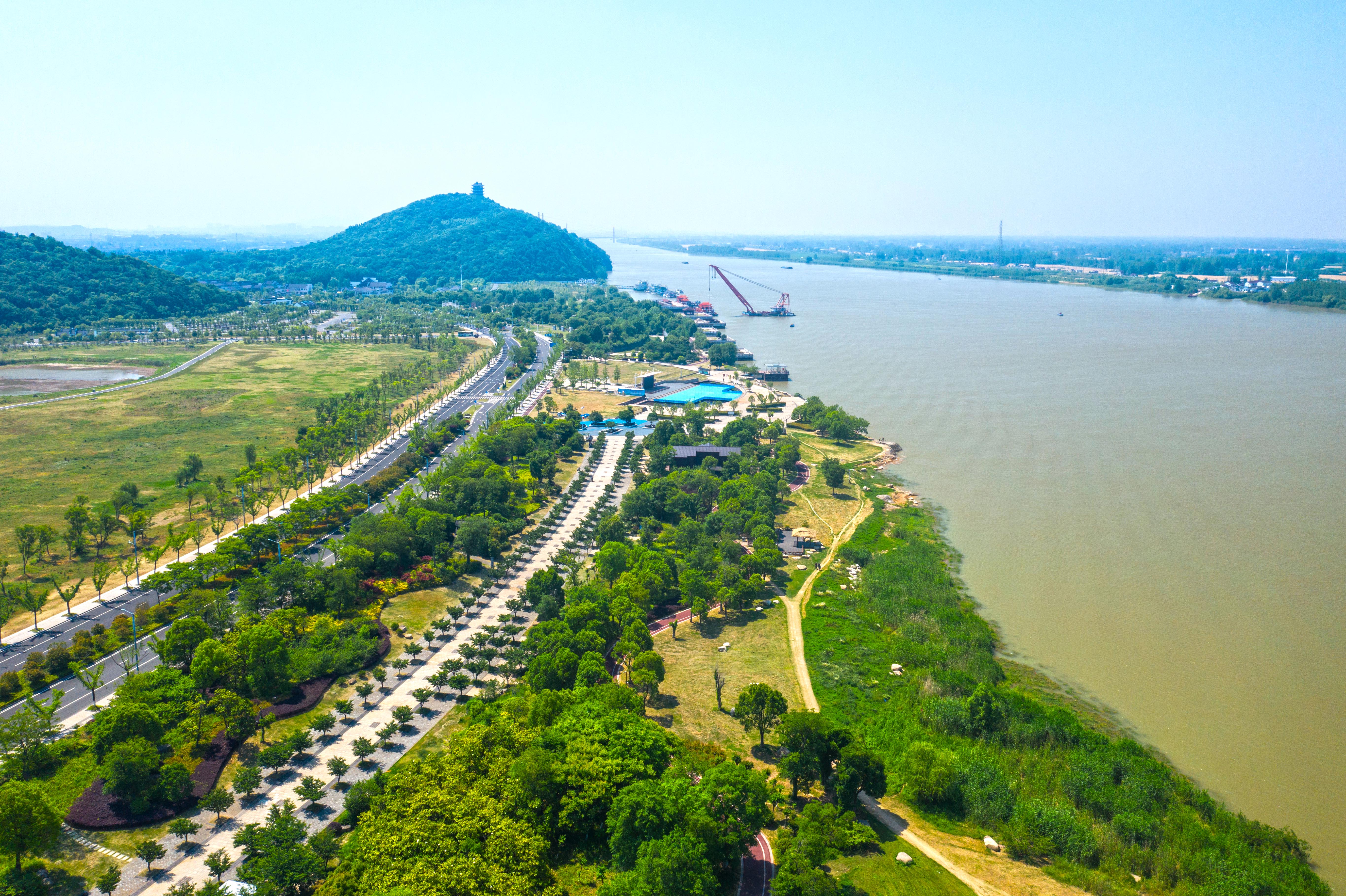 安徽省馬鞍山市長江岸線景觀帶(2022年5月17日攝,無人機照片)。新華社發(fā)