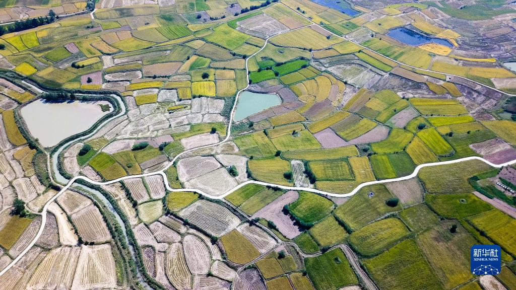 安徽省鳳陽縣小崗村的田野景象(2018年9月27日攝,無人機照片)。新華社記者 張端 攝