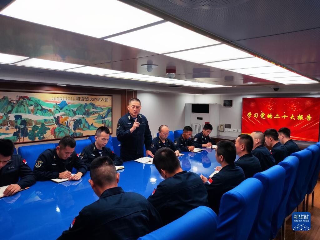 中共中央總書記、國家主席、中央軍委主席習(xí)近平24日下午出席軍隊領(lǐng)導(dǎo)干部會議時發(fā)表的重要講話,在解放軍和武警部隊引起強烈反響。這是東部戰(zhàn)區(qū)海軍護(hù)衛(wèi)艦支隊迅速組織官兵學(xué)習(xí)習(xí)主席重要講話(10月25日攝)。新華社發(fā)(劉祎瑋 攝)