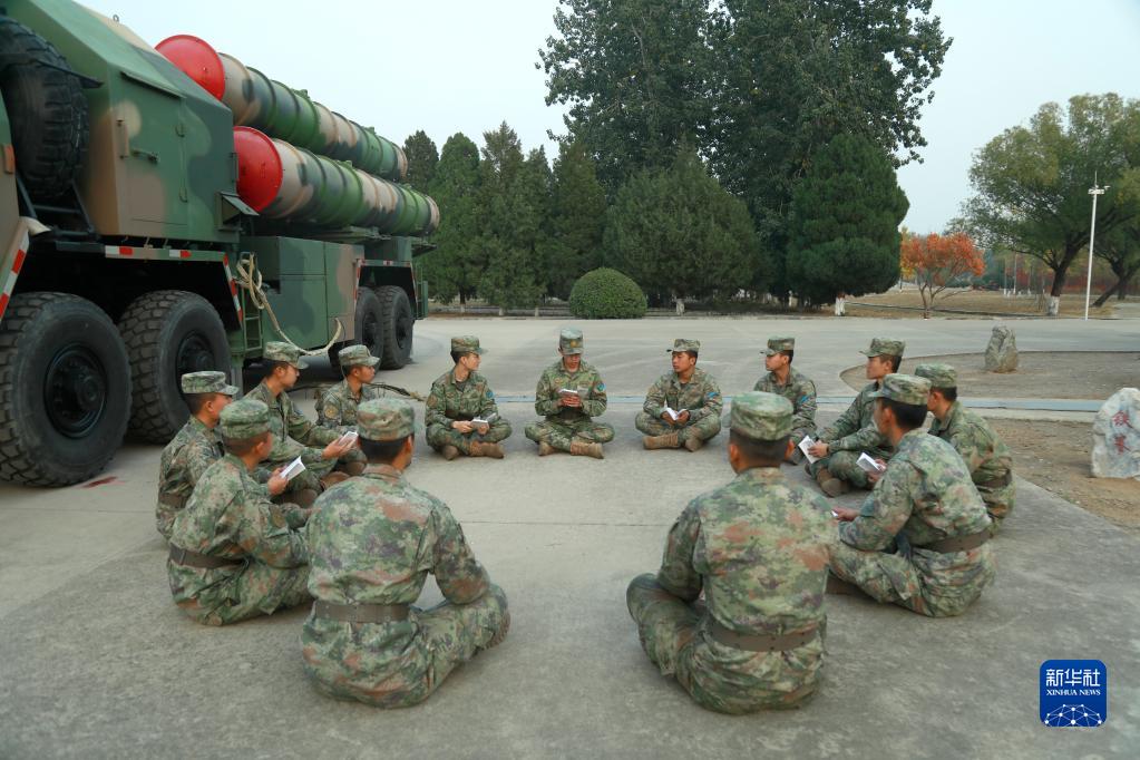 中共中央總書記、國家主席、中央軍委主席習(xí)近平24日下午出席軍隊領(lǐng)導(dǎo)干部會議時發(fā)表的重要講話,在解放軍和武警部隊引起強烈反響。這是中部戰(zhàn)區(qū)空軍“模范地空導(dǎo)彈營”開展“鳴鏑講堂”交流活動,積極組織官兵學(xué)習(xí)習(xí)主席重要講話(10月25日攝)。新華社發(fā)(趙勝之 攝)