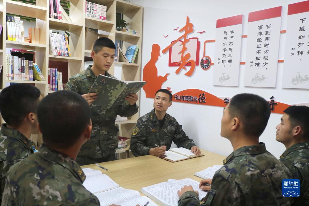 中共中央總書記、國家主席、中央軍委主席習(xí)近平24日下午出席軍隊領(lǐng)導(dǎo)干部會議時發(fā)表的重要講話,在解放軍和武警部隊引起強烈反響。這是南部戰(zhàn)區(qū)陸軍第74集團(tuán)軍某合成旅“大渡河連”組織官兵認(rèn)真學(xué)習(xí)習(xí)主席重要講話(10月25日攝)。新華社發(fā)(薛健 攝)