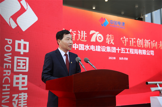 水電十五局黨委書記、董事長梁向峰發(fā)表致辭。他指出,70年來水電十五局緊緊跟隨共和國的腳步,以自帶風(fēng)雷的氣概與共和國一起成長,數(shù)代十五局人歷經(jīng)坎坷卻勇毅向前,在祖國大地建起了一項項雄美的工程!特別是黨的十八大以來的10年,著力推動企業(yè)高質(zhì)量發(fā)展,大力提升內(nèi)生能力,大力擴展業(yè)務(wù)布局,在區(qū)域及領(lǐng)域均形成大土木的業(yè)務(wù)結(jié)構(gòu),在產(chǎn)業(yè)鏈上不斷加快投資業(yè)務(wù)、總承包業(yè)務(wù)、融資加總承包業(yè)務(wù)等商業(yè)模式的構(gòu)建,國際業(yè)務(wù)遍布全球多個國家和地區(qū),總量占比全局的四分之一。以延安引黃、灃河治理,易俗社改造、興慶公園改造等項目為代表的新名片使十五局人更加自信。黨的二十大剛剛閉幕,中國的歷史翻開了新的一頁,特殊的日子,迎來建局70周年,同時入駐新的辦公大樓,在習(xí)近平新時代中國特色社會主義思想指引下,十五局人將在新時代的浪潮中倍加努力,再創(chuàng)輝煌!