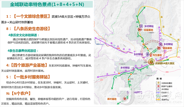 做活三產(chǎn),促進(jìn)三產(chǎn)融合。采用鎮(zhèn)區(qū)—驛道—基地—驛站—農(nóng)戶體系模式,打造1個(gè)綜合景區(qū),8條鄉(xiāng)村驛道,4個(gè)旅游產(chǎn)業(yè)基地,5個(gè)鄉(xiāng)村驛站,N個(gè)特色農(nóng)戶。即通過(guò)諸葛亮讀書臺(tái)、老縣衙恢復(fù)、諸葛文化旅游度假景區(qū)、綜合文化會(huì)展中心建設(shè)項(xiàng)目,豐富景區(qū)旅游產(chǎn)品;依托古道,游步道打造8條鄉(xiāng)村驛道;打造武侯鎮(zhèn)朱家河村民宿基地、武侯鎮(zhèn)鐘樓村寫生基地、武侯鎮(zhèn)關(guān)山梁村體旅基地、武侯鎮(zhèn)廟灣茶葉基地;依托長(zhǎng)安畫派領(lǐng)軍人物方濟(jì)眾名人效應(yīng),打造鐘樓畫鄉(xiāng)品牌;在中心村結(jié)合村莊公共空間分布情況打造5處鄉(xiāng)村驛站,提供休憩、停車、餐飲等旅游配套服務(wù)。(通訊員:張彬)