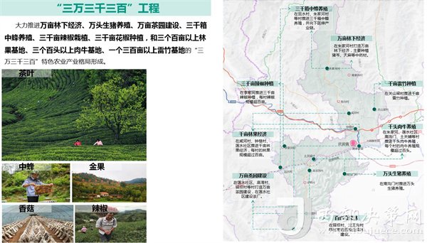做強(qiáng)一產(chǎn),做優(yōu)特色農(nóng)業(yè)。大力推進(jìn)“三萬(wàn)三千三百”(萬(wàn)畝林下經(jīng)濟(jì)、萬(wàn)頭生豬養(yǎng)殖、萬(wàn)畝茶園建設(shè);三千箱中蜂養(yǎng)殖、三千畝辣椒栽植、三千畝花椒種植;三個(gè)百畝以上林果基地、三個(gè)百頭以上肉?;亍⒁粋€(gè)三百畝以上雷竹基地)工程及“一村一品”工程,形成特色農(nóng)業(yè)產(chǎn)業(yè)格局。
