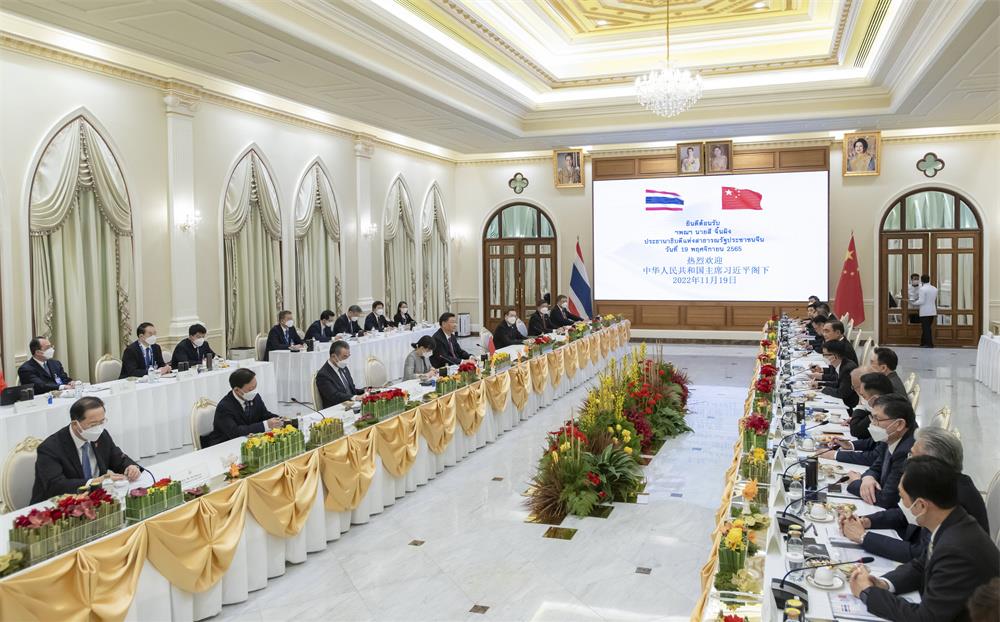 習(xí)近平指出,雙方要像走親戚一樣常來(lái)往、多走動(dòng),在涉及彼此核心利益和重大關(guān)切問(wèn)題上繼續(xù)相互堅(jiān)定支持。雙方要落實(shí)好未來(lái)5年《中泰戰(zhàn)略性合作共同行動(dòng)計(jì)劃》,統(tǒng)籌推動(dòng)各領(lǐng)域合作取得更多成果。要有效對(duì)接各自發(fā)展戰(zhàn)略,推動(dòng)高質(zhì)量共建“一帶一路”不斷取得新成效。雙方要加強(qiáng)投資、貿(mào)易、旅游、基礎(chǔ)設(shè)施、產(chǎn)業(yè)園等傳統(tǒng)領(lǐng)域合作,同時(shí)不斷培育新增長(zhǎng)點(diǎn),推動(dòng)數(shù)字經(jīng)濟(jì)、新能源汽車(chē)、科技創(chuàng)新等新領(lǐng)域合作取得積極進(jìn)展。要加快中老泰三方鐵路合作,積極推進(jìn)“中老泰聯(lián)通發(fā)展構(gòu)想”,重點(diǎn)加強(qiáng)基礎(chǔ)設(shè)施“硬聯(lián)通”,做好物流通關(guān)“軟聯(lián)通”,擴(kuò)大泰國(guó)優(yōu)質(zhì)農(nóng)副產(chǎn)品輸華。中方愿同包括泰國(guó)在內(nèi)的各方一道,高質(zhì)量實(shí)施《區(qū)域全面經(jīng)濟(jì)伙伴關(guān)系協(xié)定》,讓這一全球最大自貿(mào)區(qū)安排釋放更大紅利。加大打擊跨境犯罪,深化追逃追贓合作。加強(qiáng)教育、醫(yī)療、扶貧等民生領(lǐng)域合作,通過(guò)多種方式交流減貧發(fā)展經(jīng)驗(yàn),推動(dòng)兩國(guó)扶貧合作走深走實(shí),辦成、辦好一批貼近群眾、服務(wù)基層的實(shí)事。要加強(qiáng)青年交流,使兩國(guó)人民心更近、情更深,豐富中泰命運(yùn)共同體的人文內(nèi)涵。