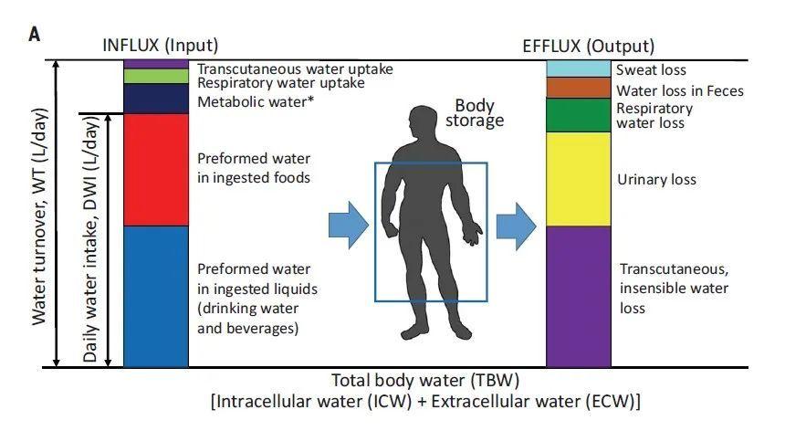 沒有水,人類只能生存三天。人體每天的水周轉量(Water Turnover)即水的總交換量,包括了我們攝入的水分和流失的水分,在很大程度上反映了人們的需水量。