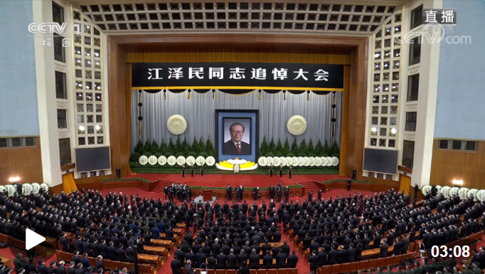 12月6日上午10時,黨中央、全國人大常委會、國務院、全國政協(xié)、中央軍委在北京人民大會堂隆重舉行江澤民同志追悼大會。