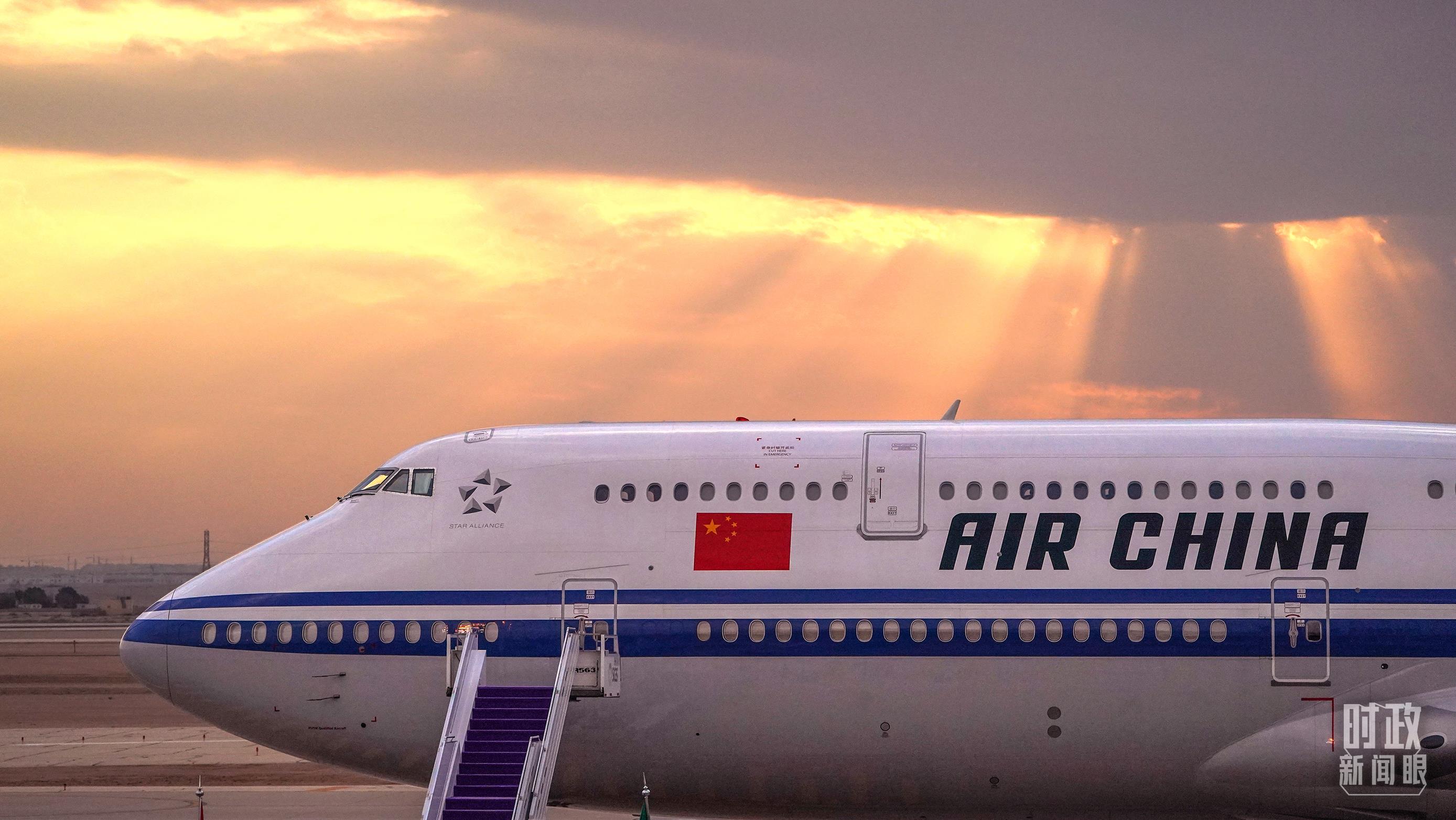 △專機(jī)抵達(dá)沙特首都利雅得。(總臺國廣記者李晉拍攝)
