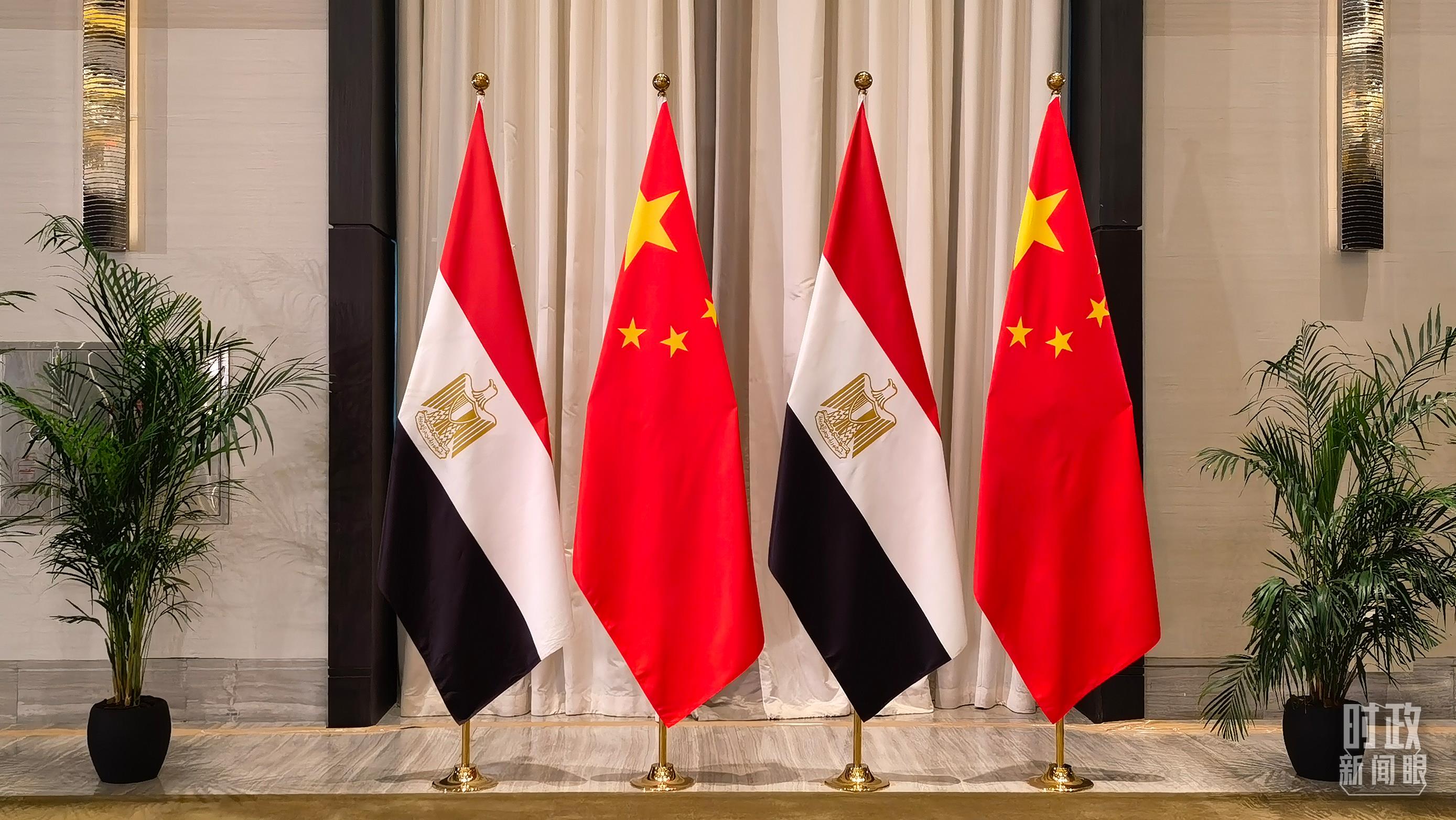 △會見現(xiàn)場的中埃兩國國旗。(總臺央視記者韓銳拍攝)
