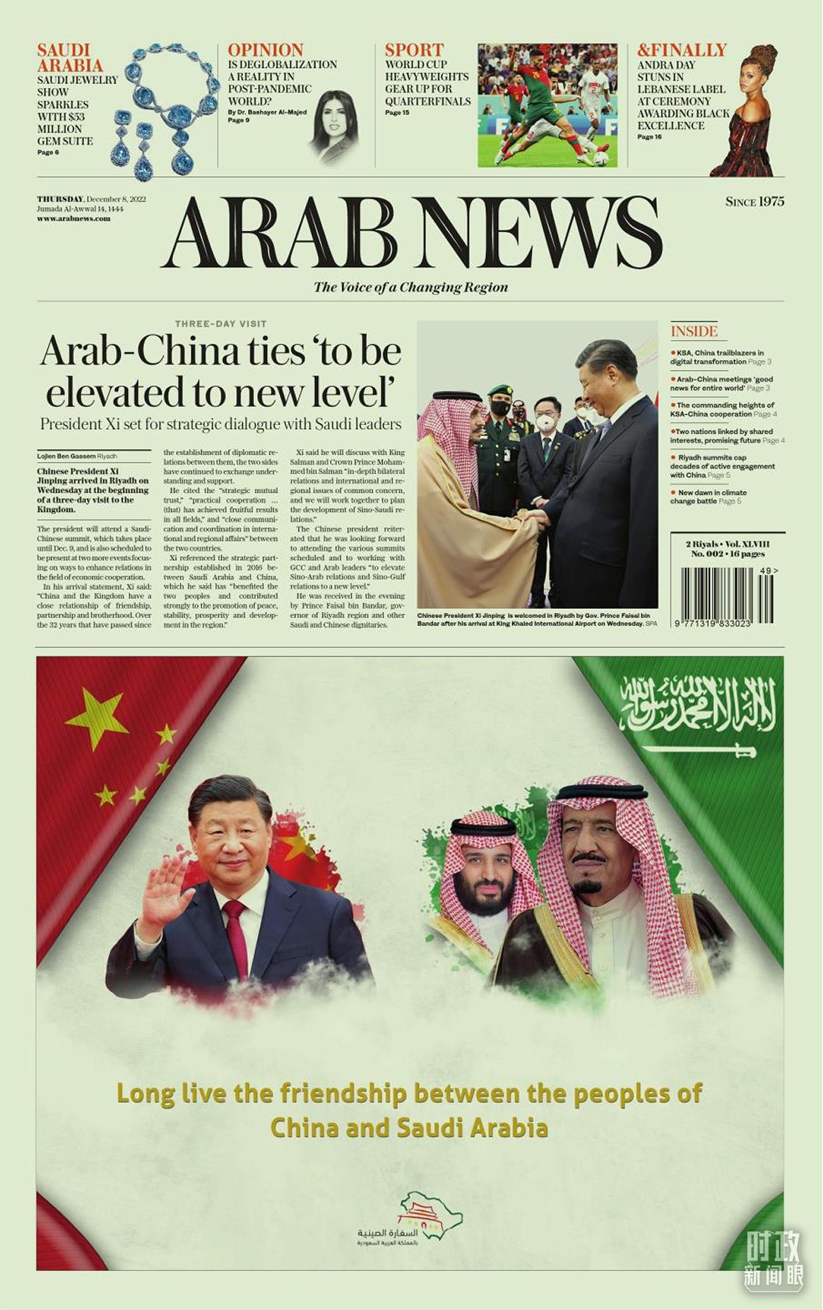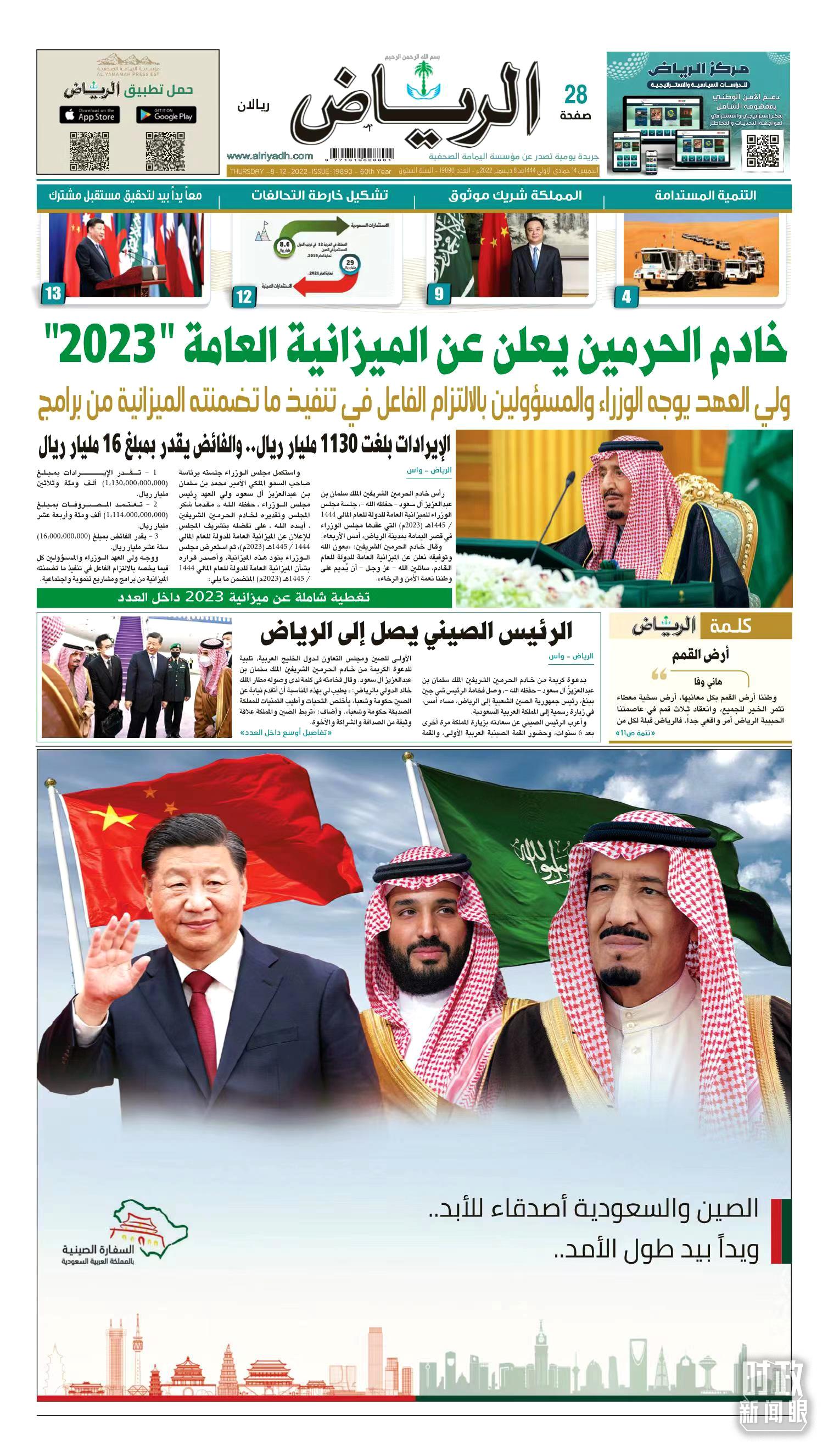 △沙特主流媒體頭版對習(xí)主席訪沙進(jìn)行報道。