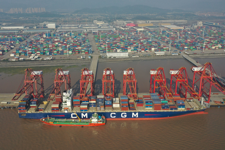 貨輪??吭谡憬瓕幉ㄖ凵礁勖窎|碼頭(12月13日攝,無人機(jī)照片)。新華社記者 黃宗治 攝