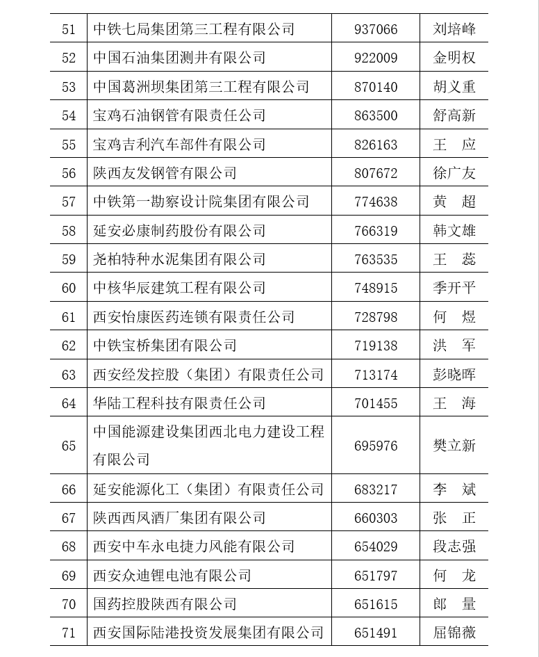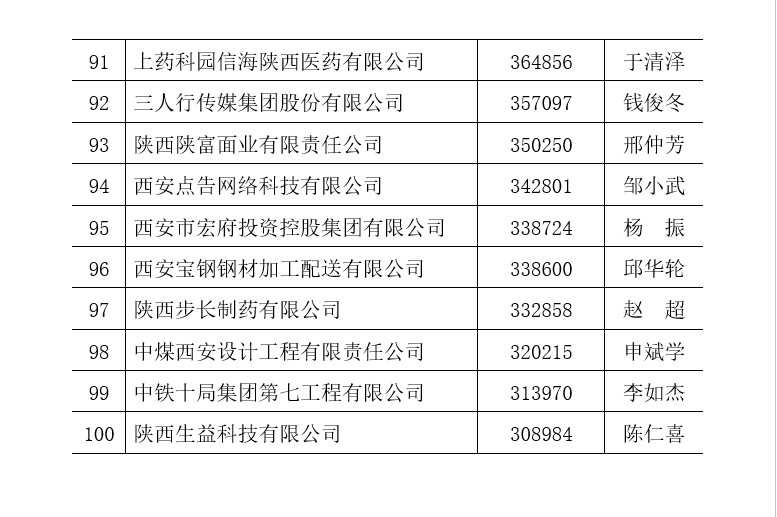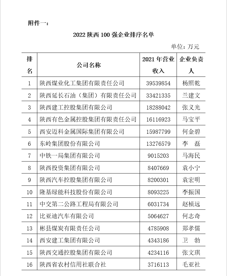 附件一:2022陜西企業(yè)100強排序名單