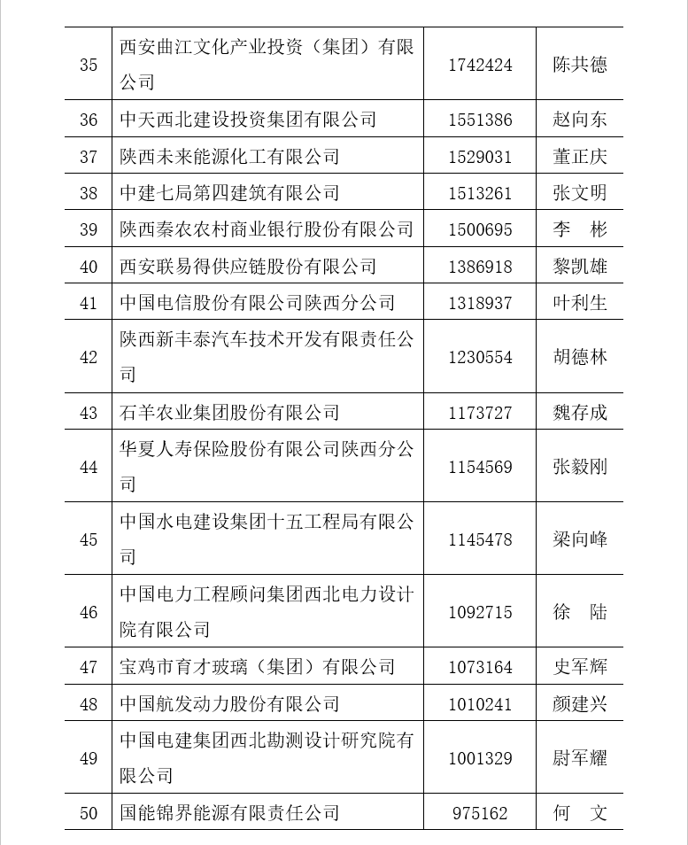 附件二:2022陜西民營企業(yè)50強排序名單
