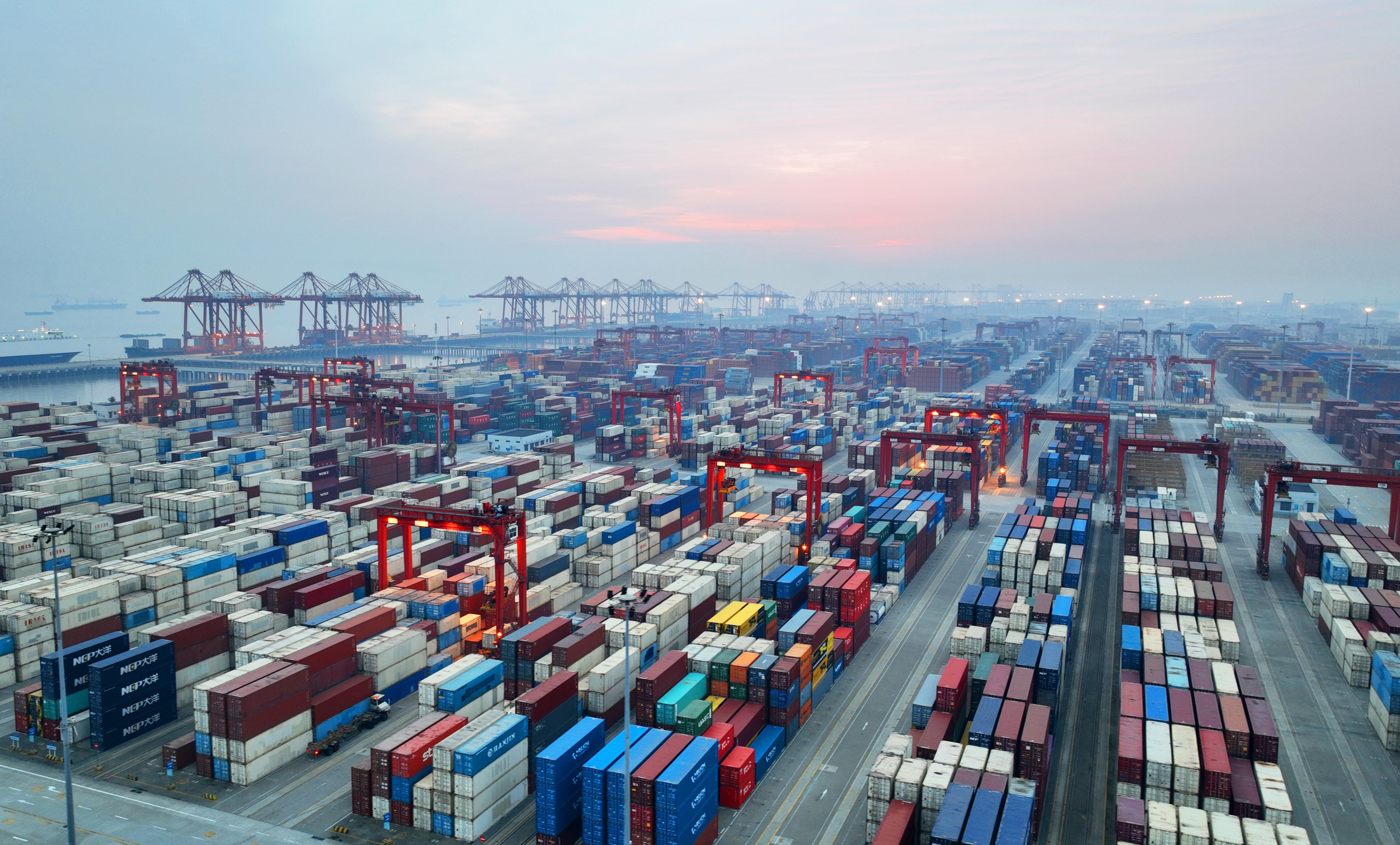 △2023年1月1日,江蘇省太倉港集裝箱碼頭吞吐作業(yè)繁忙有序。