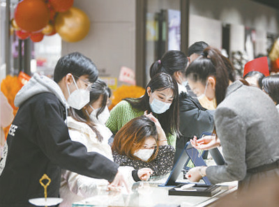 1月1日,消費者在天津金茂匯商場內(nèi)選購商品。新華社記者 孫凡越攝