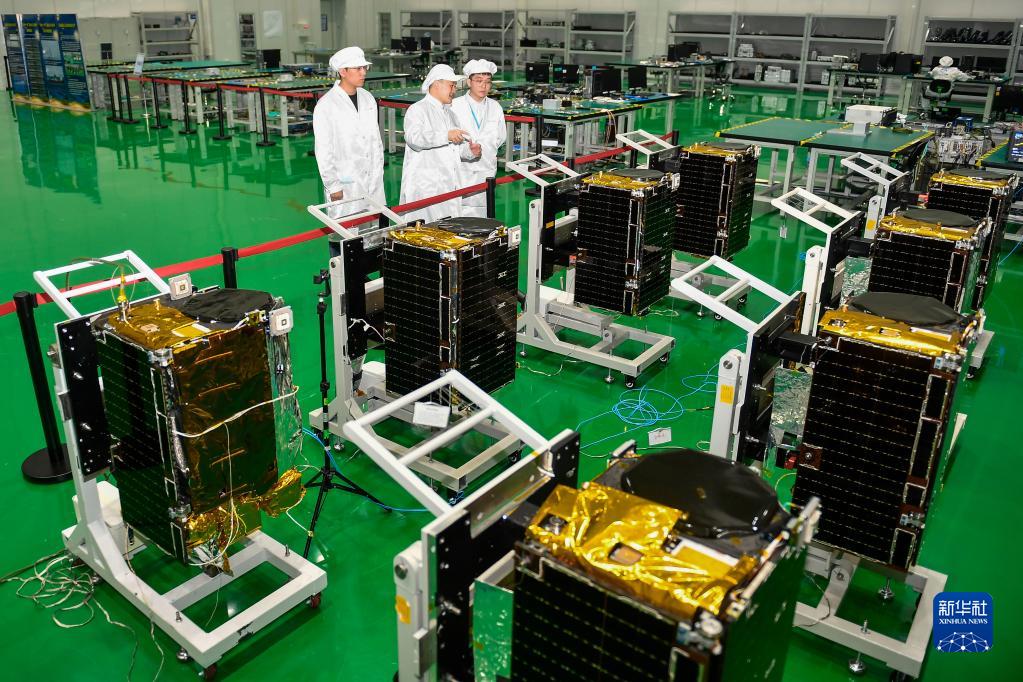 在吉林長春,長光衛(wèi)星技術(shù)股份有限公司科研人員在衛(wèi)星總裝測(cè)試大廳進(jìn)行相關(guān)測(cè)試工作 (2022年10月17日攝)。新華社記者 許暢 攝