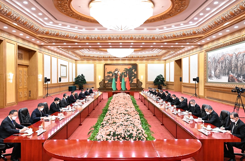 習(xí)近平指出,這是你就任總統(tǒng)后首次訪華,今天又是中土建交紀(jì)念日,我們?nèi)嬷\劃中土關(guān)系下一步發(fā)展,共同宣布將兩國關(guān)系提升為全面戰(zhàn)略伙伴,意義重大。中國共產(chǎn)黨正在團(tuán)結(jié)帶領(lǐng)全國各族人民以中國式現(xiàn)代化全面推進(jìn)中華民族偉大復(fù)興,土方正在積極推進(jìn)土庫曼斯坦復(fù)興戰(zhàn)略。中土兩國理念相通,目標(biāo)相似,利益相連,在發(fā)展振興路上要攜手努力,發(fā)揮互補(bǔ)優(yōu)勢,深挖合作潛力,實(shí)現(xiàn)共同發(fā)展。中方愿同土方一道,持續(xù)深化中土全方位合作,推動(dòng)構(gòu)建中土命運(yùn)共同體,使兩國關(guān)系在更高水平上向前發(fā)展。