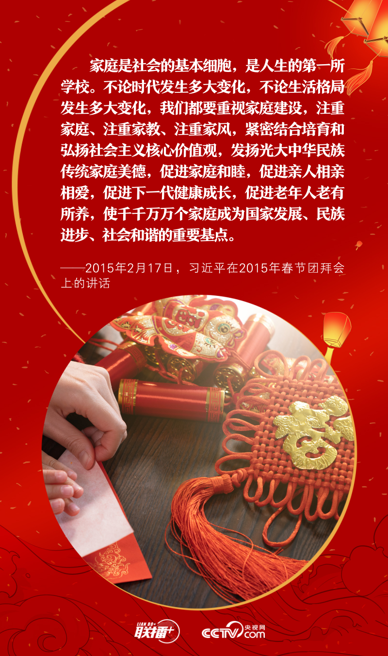 天下之本在國,國之本在家。元宵佳節(jié)既是萬家團圓、共話美好的日子,也是愛國愛家同頻、家國情懷共融的時刻。黨的十八大以來,習近平總書記在講話中多次提到了家庭、家教、家風,深刻闡述了家庭與社會、家庭與國家之間的關系。央視網(wǎng)《聯(lián)播+》特推出海報,與您一起感悟總書記的家國情懷。