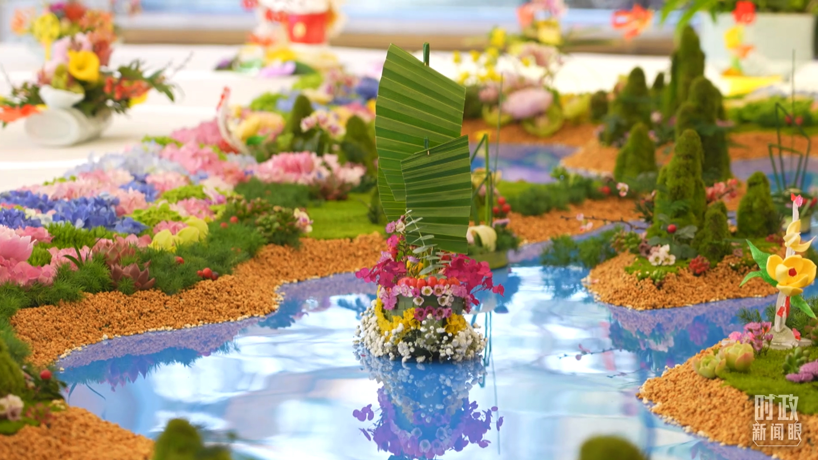 △2月10日會(huì)見(jiàn)結(jié)束后,習(xí)近平為洪森舉行了宴會(huì)。這是宴會(huì)現(xiàn)場(chǎng)的帆船造型。(總臺(tái)央視記者蔣碩拍攝)