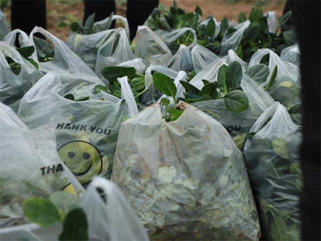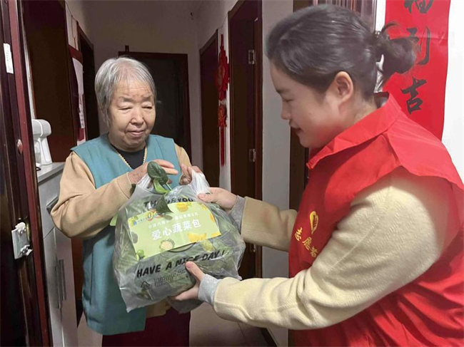 志愿者們來到田間助農(nóng)采摘菠菜和香菜,大家齊心協(xié)力、干勁十足,不一會兒一批新鮮蔬菜便裝袋完成。隨后志愿者們將“愛心蔬菜包”送往翠華南路社區(qū)困難老人手中,以實(shí)際行動傳遞愛心,踐行央企責(zé)任。